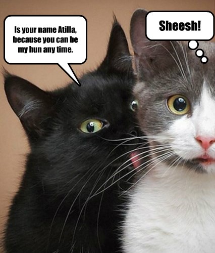 Pick-up Lines - Lolcats - lol | cat memes | funny cats ... from i.chzbgr.com Oh, kinky. i should have known you'd be into that sort of thing, she replied, managing a wink. These pick up lines are cheesy, funny, corny, cute and nerdy. Figure out which ones you would feel comfortable saying. Are you a cat because i'm feline a connection between us. Following is our collection of cats chat up lines and openingszinnen working better than reddit. Girls love cats so they are always a good conversation topic. A sincere pickup line is more successful when it is creative and is something you feel comfortable saying. If i were a cat i'd spend all 9 lives with you.